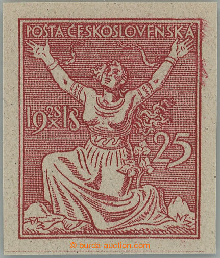 Philately. PLATE PROOF values 25h with year L, gravure printing plate proof greater size 22x27mm in/at red-brown color on stamp paper with gum; mint never hinged, on reverse hints printing color, exp. by Pittermann and Vrba (Image) (Image2)