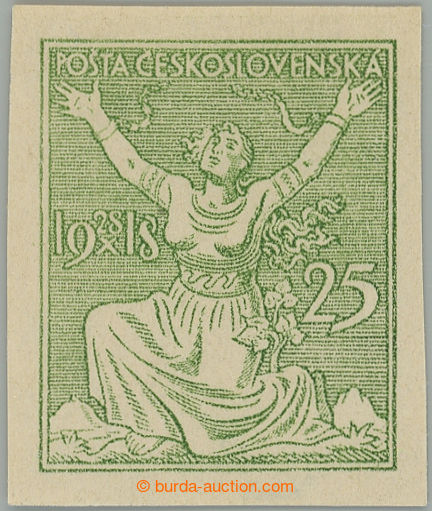 Philately. PLATE PROOF values 25h with year L, gravure printing plate proof greater size 22x27mm in/at green color on stamp paper with gum; hinge / label, exp. by Pittermann and Vrba (Image) (Image2)
