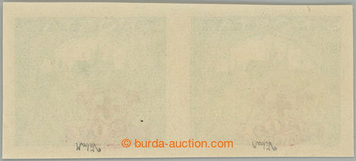 Philately. Pof.171Nc, 60h green, imperforated horizontal pair with additional-printing type A, shift added-print light downward outside picture stamp.; mint never hinged, exp. Vrba (Image) (Image2)