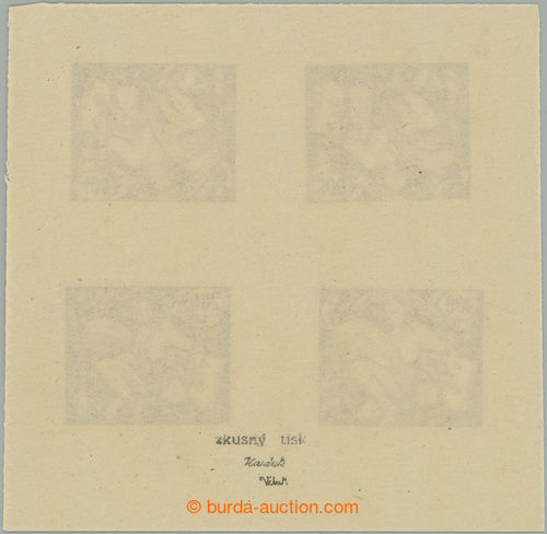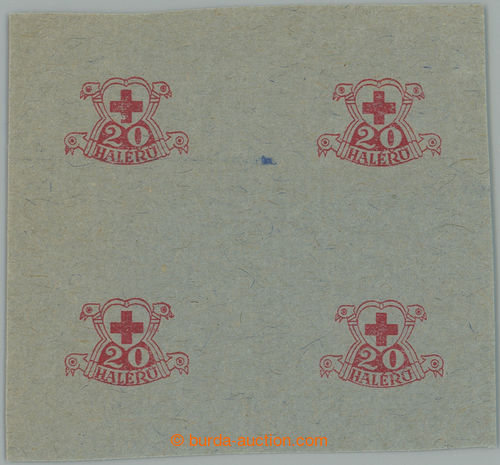 Philately. PLATE PROOF added-print A values 20h in red color, block of four on/for ordinary greeny paper without gum; exp. Vrba