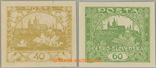 Philately. Pof.170Na-171Na, Hradcany 40h and 60h without perf and added-print; mint never hinged, both stamp. with zrnkem in paper, exp. Vrba