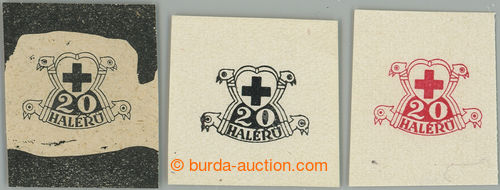 Philately. PLATE PROOF added-print A values 20h, comp. 3 pcs of, 2x in black color, from that 1x unfinished margins and print on/for already used paper, 1x in red color on chalky paper; exp. Vrba (Image) (Image2)