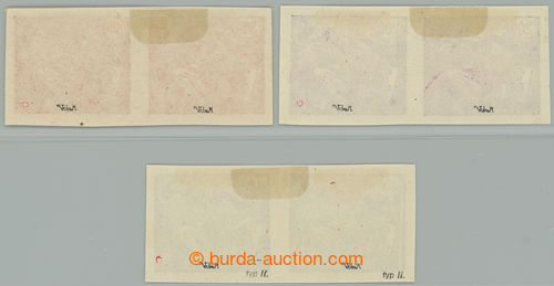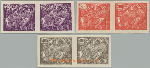 Philately. Pof.165N-167IIN, selection of imperforated stmp 200h, 300h and 400h in horiz. pairs, 400h type II.; hinge / label, exp. Vrba
