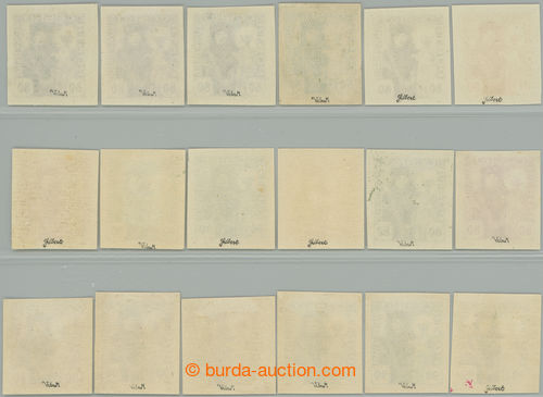 Philately. PLATE PROOF selection of 18 pcs of plate proofs values 80h (8x) and 90h (10x) in various colors on stamp paper with gum; mainly of removed hinge, several minor faults, all exp. by Gilbert and Vrba (Image) (Image2)