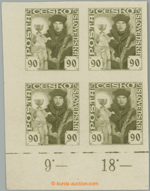 Philately. PLATE PROOF values 90h in/at olive color, plate proof in/at L bottom corner block of four; mint never hinged, exp. Vrba