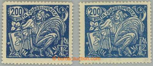 Philately. Pof.174A, 174B, 200h blue with line perforation 13¾, type III (**, minor gum fault) + 200h blue with comb perforation 13¾ : 13½, type II (new gum); exp. by Gilbert and Vrba (Image) (Image2)