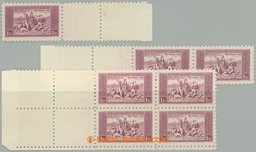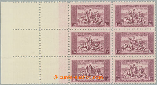 Philately. Pof.281K, Anthem-issue 1CZK, block of 6 with 3 L coupons and margin; mint never hinged (Image) (Image2)