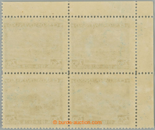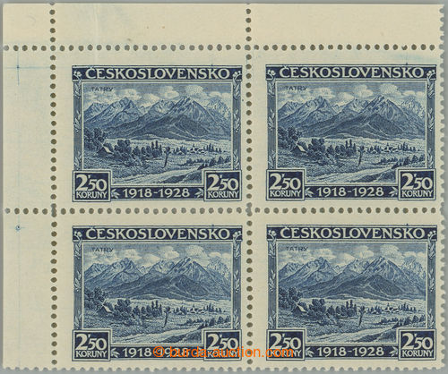 Philately. Pof.240, Jubilee - High Tatras 2,50CZK blue, UL corner blk-of-4 with two guide marks in L margin; mint never hinged, only small production bend (Image) (Image2)
