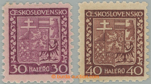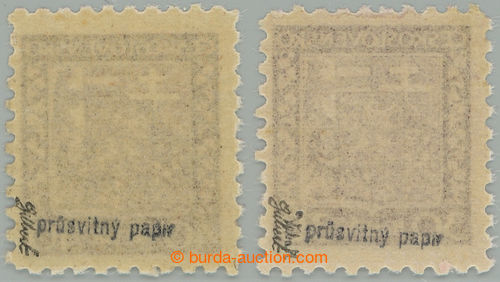 Philately. Pof.252x, 253x, Coat of arms 30h violet and 40h brown, both transparent (parchment paper); mint never hinged, 30h minor faults and minor gum fault, exp. by Gilbert., Vrba (Image) (Image2)