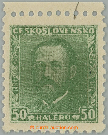 Philately. FORGERY TO DEFRAUD THE POST / Pof.275F, Smetana 50h green with upper margin, so-called. Krnov forgery, letterprint with gum; mint never hinged, small stroke by pen at top (Image) (Image2)
