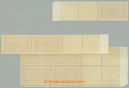 Philately. Pof.281KL+KP+DC, Anthem-issue 1CZK, 1x horizontal pair with L and 1x single stamp. with R coupon with margin + corner blk-of-4 with 2 L coupons with margin and plate number 1; mint never hinged, KP usual small production