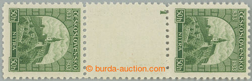 Philately. Pof.273Ms(2) plate number, Nitra 50h green, vertical 2-stamps gutter with plate number 1, without margins; mint never hinged, nice intaktni piece without marks, rare, rare usage! (Image) (Image2)