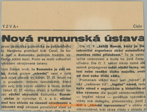 Philately. FORGERY newspaper miniature sheet Pof.ANV18, typical defects as interrupted wing on pos. 1; mint never hinged, for studjini purpose, marked Padelek (Image) (Image2)
