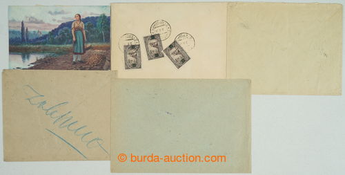 Philately. comp. 5 pcs of entires burdened by surtax, various franking postage-due stamp. issues Ornamenty, TESTER Hradcany and on/for Postage-due stamps, i.a. Pof.DL28, DL22, DL19, DL38, from that 3x insufficiently paid/franked