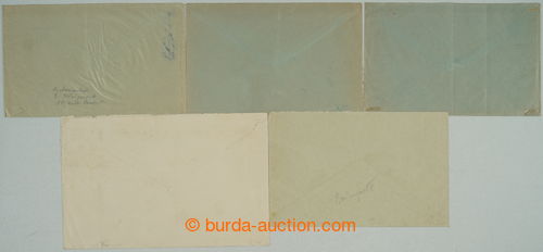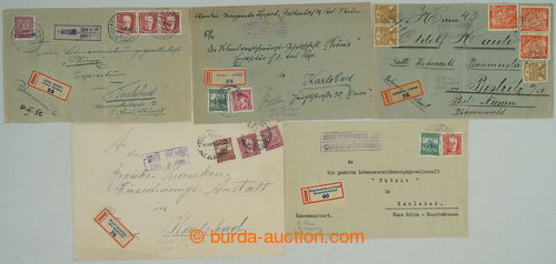 Philately. comp. 5 pcs of Reg letters with cancel. postal-agencies: MEDONOSY, JALOVY DVŮR, MAIERSCHON, OKROUHLE HRADISTe and TISOVA, nice print on/for Us and franked with. letters; good condition, originates from big collection
