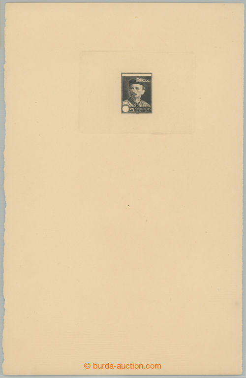 Philately. HEINZ Bohumil / M. Tyrs, master die in black color without nominal value, whole sheet zpublikace about/by part engraver B. Heinz, IN MEMORIAM BOHUMILA HEINZE 1940 (Image) (Image2)