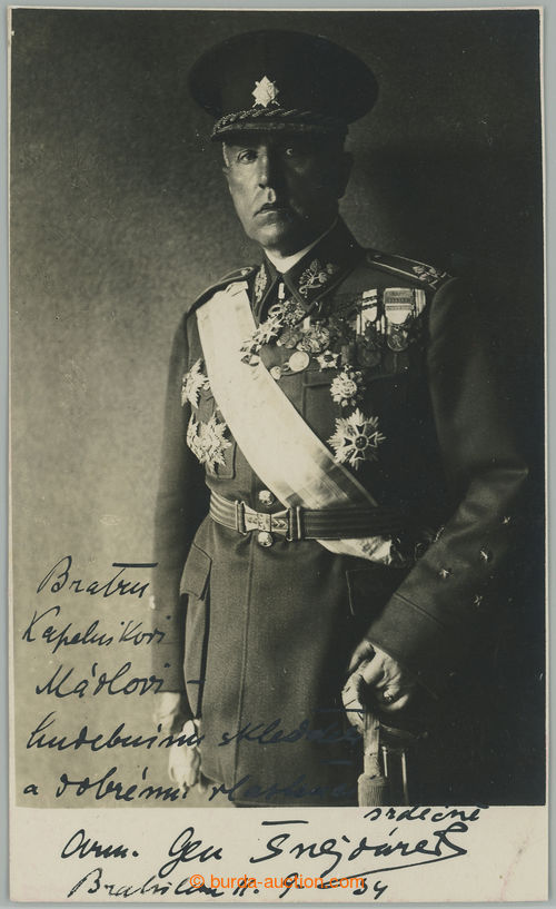 Philately. SNEJDAREK Joseph (1875-1945), Czechoslovak General, commander fight for Teschen Silesia, legionnaire, autograph with pripisem on/for portrait B/W photo postcard in uniform; very fine and sought (Image) (Image2)