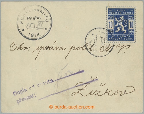 Philately. letter with Pof.SK1, 20h blue, round cancel. N.V. and SCOUT MAIL, lower LETTER OD SKAUTA PREVZAL; very fine (Image) (Image2)