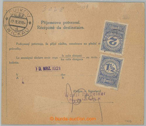 CDS CVIKOV 12.III.21, on reverse Austrian Postage due stamp in value 3,50K, arrival postmark LINZ 1/ 19.II.21; good condition (Image) (Image2)