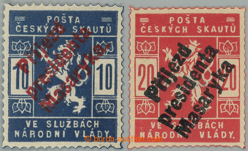 Philately. FORGERY / Pof.SK3, SK4, Arrival of President Masaryk 10h and 20h; marked forgeries to/at srovnavacim purposes (Image) (Image2)