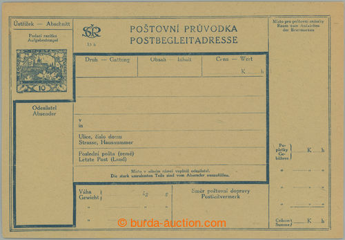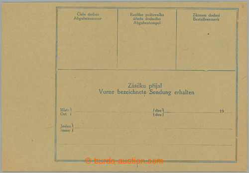 Philately. CPP3B, dispatch note Hradcany 10h with monogram and valuable 15h, Czech - German text; superb (Image) (Image2)