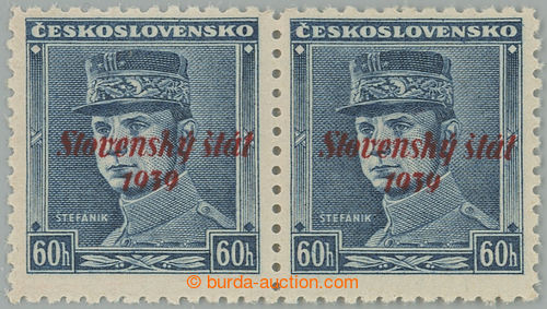 Philately. Sy.11 ST, Blue Stefanik 60h, horizontal pair, overprint combination types I. + II.; mint never hinged (Image) (Image2)