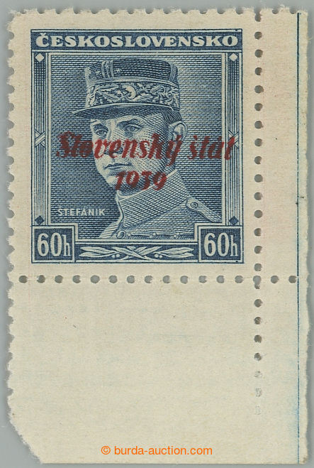 Philately. Sy.11, Blue Stefanik 60h, LR corner piece; mint never hinged, exp. by Sablatura (Image) (Image2)