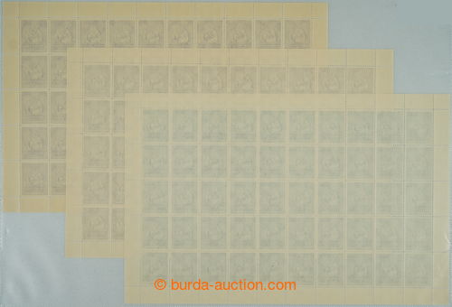 Philately. COUNTER SHEET / Sy.87-89, Military, complete set of in/at 50 pcs of counter sheet; cross fold in perforation, 1,30+2Ks very allowed in perforation (viewing of quality recommended), rare complete sheets from this issue! (Image) (Image2)