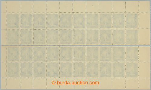 Philately. COUNTER SHEET / Sy.51D, Tatra 30h with line perforation 10¼, 2 complete sheets of 200 with plate number A3 and wmk P1 and P2; folded in perforation, sporadically slightly allowed, P2 two spots, otherwise very nice, in/at