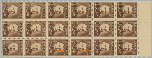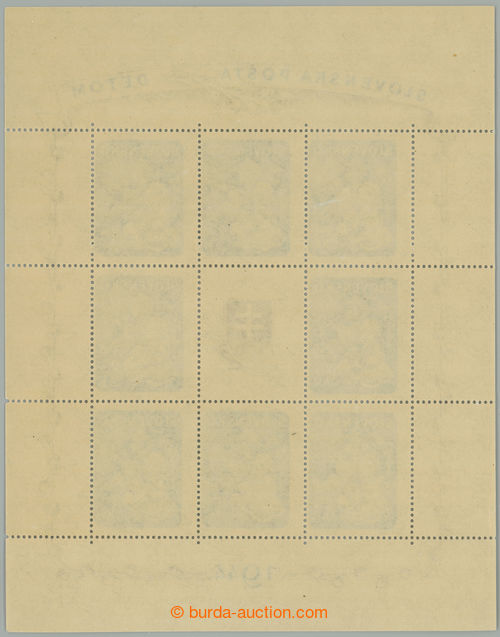 Philately. Sy.44Xx production flaw, Tiso 70h brown, without watermark, upper marginal vertical blk-of-18, 1x significant shift centre vertical perf transport; 2x label in/at prostrednim column, unusual (Image) (Image2)