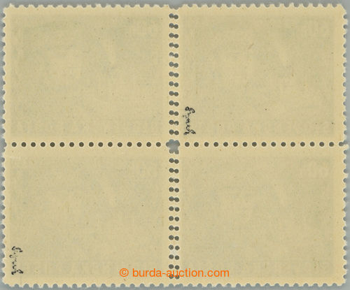 Philately. Sy.35A production flaw, Stefanik 60h dark green, block of four with double vertical perf between stamp.; mint never hinged, exp. by Synek