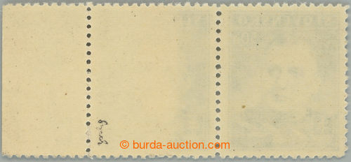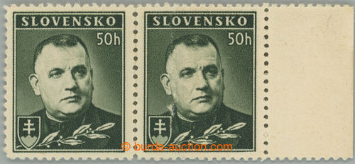 Philately. Sy.43Yx production flaw, Tiso 50h green, right marginal horizontal pair with production flaw - joined paper through/over right stamp.; mint never hinged, exp. Synek, c.v.. -,-, sought! (Image) (Image2)