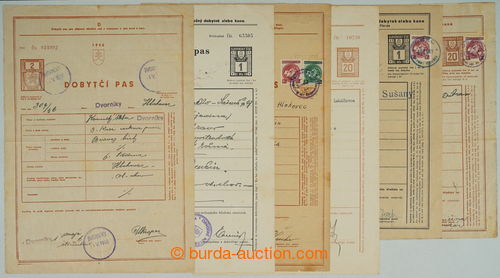 Revenue Stamps. [COLLECTIONS] SLOVAKIA / Veterinary passport, comp. 13 pcs of, any other one, various issue, additionally printed and mounted revenues, stamp. nakazoveho fund, cancel. and oths.; good condition, interesting and