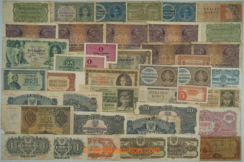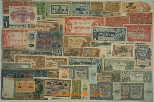 Banknotes. [COLLECTIONS] SELECTION of / ca. 90 pcs of various bank-notes from uvedeneho period, it contains e.g. Czechosl. 6x 10CZK 1927, 100CZK 1931, 20Ks 1942 set Hs 7, 3x camp order, then for example. Germany, USSR, Poland,