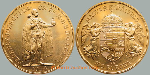 Numismatics. Franz Joseph I. (1848-1916), 100 crown 1908 KB - novorazba, weight 33,83 g; fine zachovalost (Image)