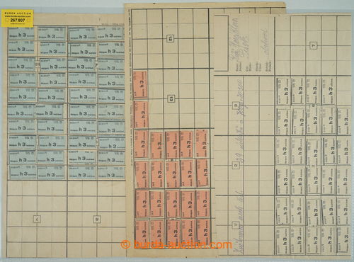 Revenue Stamps. RATION CARDS / BOHEMIA-MORAVIA / comp. 3 pcs of accounting sheets with mounted cuts ration cards; good condition, folded, unusual