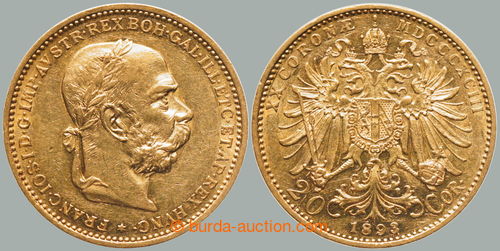 Numismatics. Franz Joseph I. (1848-1916), 20 Crown 1893 b.z., weight 6,77 g; small hranky, line marking/-s (Image)