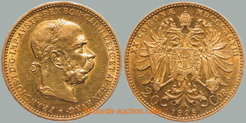 Numismatics. Franz Joseph I. (1848-1916), 20 Crown 1898 b.z., weight 6,77 g; small hranky, line marking/-s (Image)