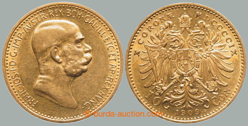Numismatics. Franz Joseph I. (1848-1916), 10 Crown 1909 b.z. - Marschall, weight 3,38 g; small hranky, line marking/-s (Image)