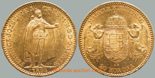 Numismatics. Franz Joseph I. (1848-1916), 20 Crown 1892 KB, weight 6,77 g; small hranky, line marking/-s, residue/scrap razebniho lesku