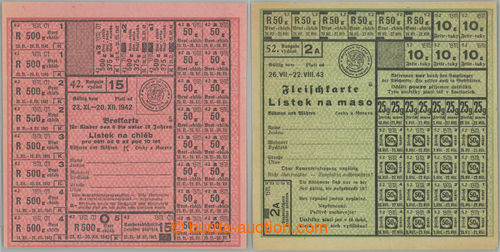 Revenue Stamps. RATION CARDS / BOHEMIA-MORAVIA / comp. 2 pcs of Un Bohemian and Moravian ration cards on/for bread and meat; good condition, only folds (Image) (Image2)