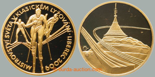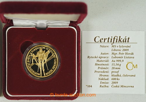 Numismatics. CESKA MINCOVNA / Au medal World Championship in skiing Liberec 2009 (P. Horak), Au 0.999, 28 mm, 15,56 g, proof, printing 600 pcs of, placed in original etui with certificate; very fine (Image) (Image2)