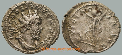 Numismatics. RIM / Postumus (260-269), Bi antoninianus, Rv.: VICTORIA AVG, kracejici Victoria from the L drzi venec and palmovou branch, spoutany prisoner by/on/at jejich nohou, mint Kolin, weight 3,64 g, RIC 90; light nedorazeny,