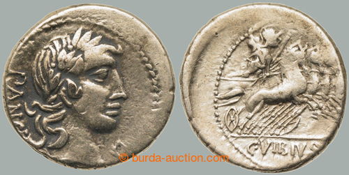 Numismatics. RIM / C. Vibius C. f. Pansa (90 for example. Kr.), Ag denar, Av.: ovencena head Apollona from R, lower venec, after/behind her PANSA, Rv.: Minerva cvalajici in/at quadrize from R, drzi ostep and tropheum, in/at exergu