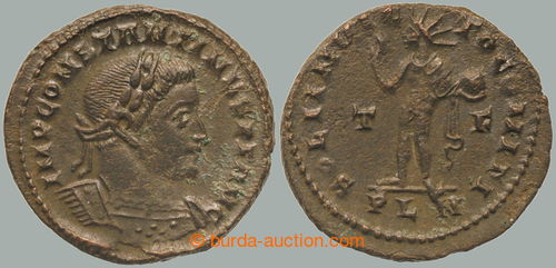 Numismatics. RIM / Constantinus I. Veliky (306-337), AE follis, Rv.: SOLI INVICTO COMITI, standing Sol from the L, in/at levici drzi globus and pozveda pravici, in field T-F, in/at exergu PLN, mint London, RIC VI 121a; nice