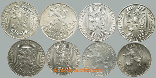 Numismatics. CZECHOSLOVAKIA 1945-92 / complete set 8 pcs of predmenovych memorial/special Ag minci: 50Kcs 1947 - Slovak National Uprising, 100Kcs 1948 - 600. anniv of foundation Univerzity Charle's, 50Kcs 1948 - Prague revolt,