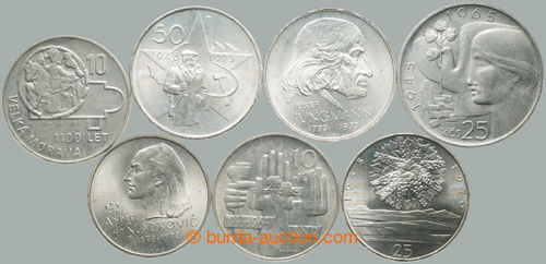 Numismatics. CZECHOSLOVAKIA 1945-92 / comp. 7 pcs of memorial/special Ag minci: 10Kcs 1964 - 20. anniv of Slovak National Uprising, 25Kcs 1965 - 20. anniv of liberation, 10Kcs 1966 - 1100 years Velke Moravia, 25Kcs 1970 - 25. anniv