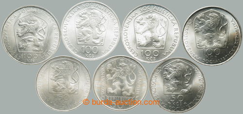 Numismatics. CZECHOSLOVAKIA 1945-92 / comp. 7 pcs of memorial/special Ag minci: 100Kcs 1974 - Frederic Smetana, 50Kcs 1974 - Janko Jesensky, 50Kcs 1975 - sports club. Neumann, 100Kcs 1976 - Janko Kral, 100Kcs 1976 - Viktor Kaplan,