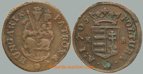 Numismatics. UHRY / Malkontenti (1703-1711), Cu poltura 1705 KB; small koroze, nice toned (Image)