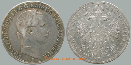 Numismatics. Franz Joseph I. (1848-1916), spolkovy taler 1857 E, Karlovsky Belgrade (Karlsburg); small hranky, line marking/-s, nice toned, rare and sought mint, RR! (Image)
